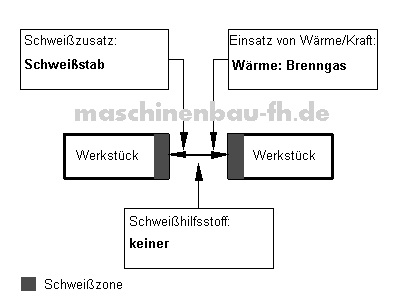 Darüber hinaus wird je nach Anwendung dem Schweißbad Zusatzwerkstoff in Form eines Schweißstabes zugeführt. Wird dabei von rechts nach links und mit tupfendem Stab und pendelnden Brenner gearbeitet, so spricht man vom Nachlinks-Schweißen. Wird hingegen von links nach rechts und mit rührendem Stab und Brenner vorgegangen, so wird dies als Nachrechts-Schweißen bezeichnet. Letzteres findet in der Praxis bei dickeren Blechen Anwendung.